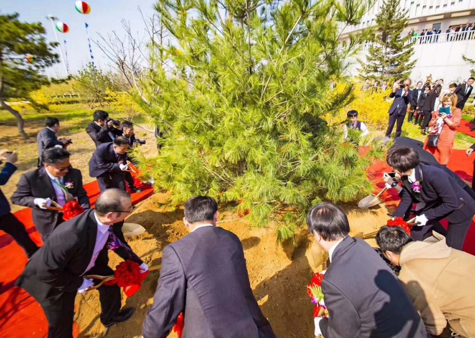 诺奖大师与中外氢分子专家在潘晓非董事长陪同下,一起植种“生命树”,将生命之绿留在生物谷。