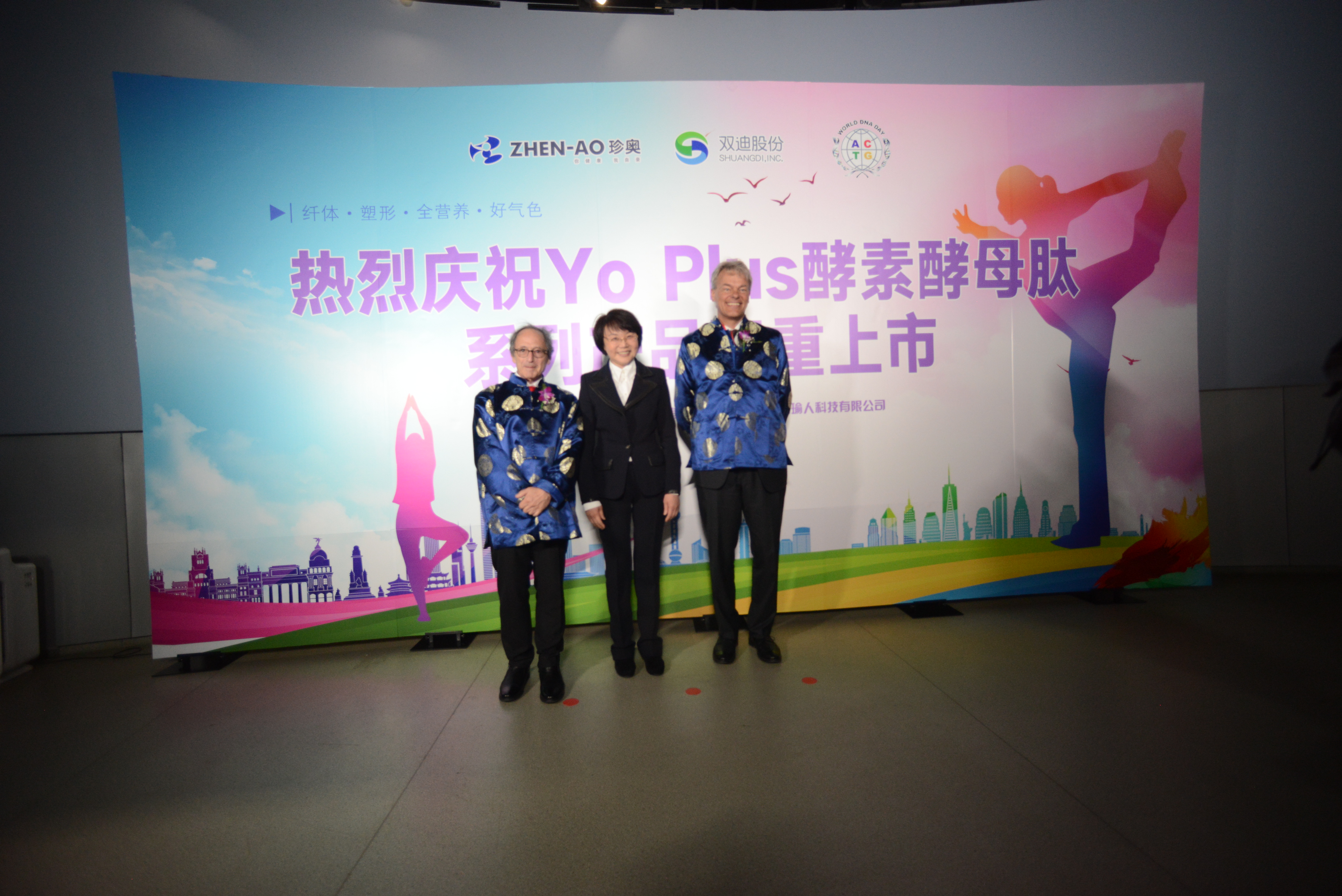 随后三位诺奖大师和潘总、刘总为双迪新品——Yo Plus 酵素酵母肽系列产品揭幕。它以“营养纤体塑身理论”为依据,结合瑜伽运动特点和人体营养需求,按照运动前、运动后、日常维护三个阶段,分子渗透,以补为排,轻松去“腹”担,满足小“腰”求!这款产品理论基础和研制工艺,与诺奖大师在蛋白质和小分子肽领域的研究相辅相成。相信借诺奖大师的手,双迪新品一定能趁大势、载大运、货大卖!