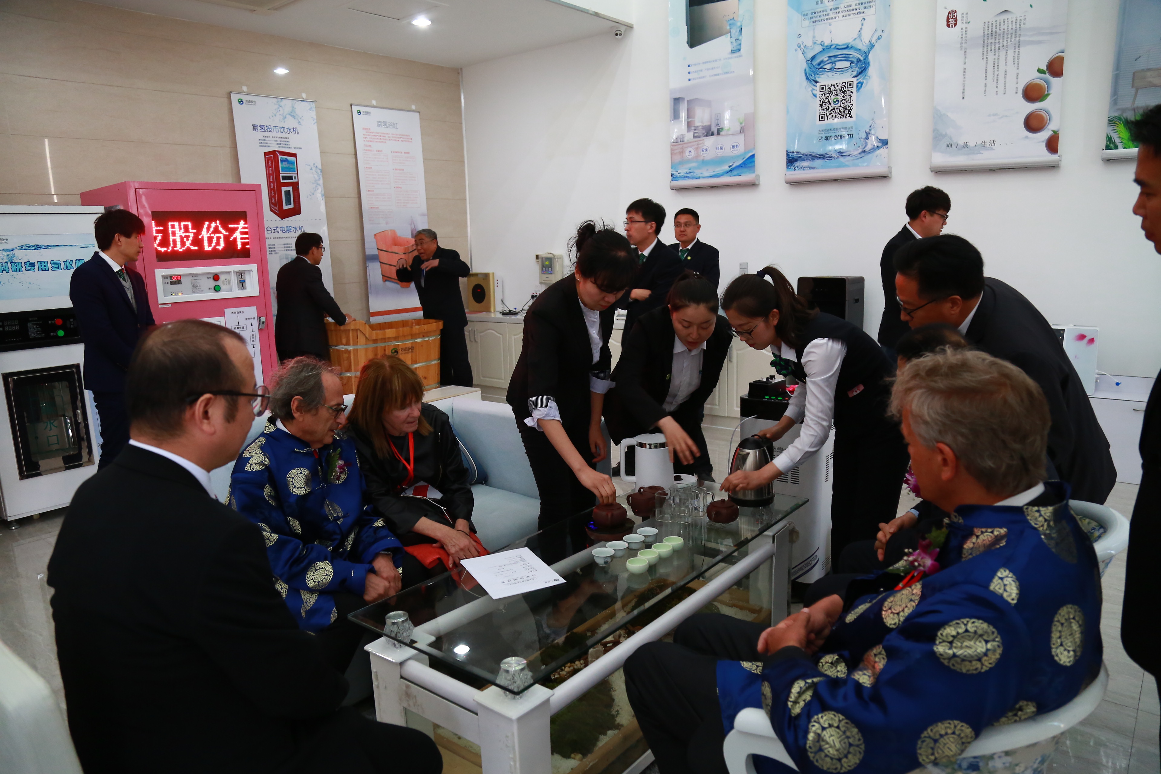 在参观到双迪产品展馆时,潘总将双迪明星产品知水微型富氢制水器赠予三位诺贝尔奖科学家。一流的产品配一流的科学家,愿双迪产品能为诺奖大师的健康保驾护航!