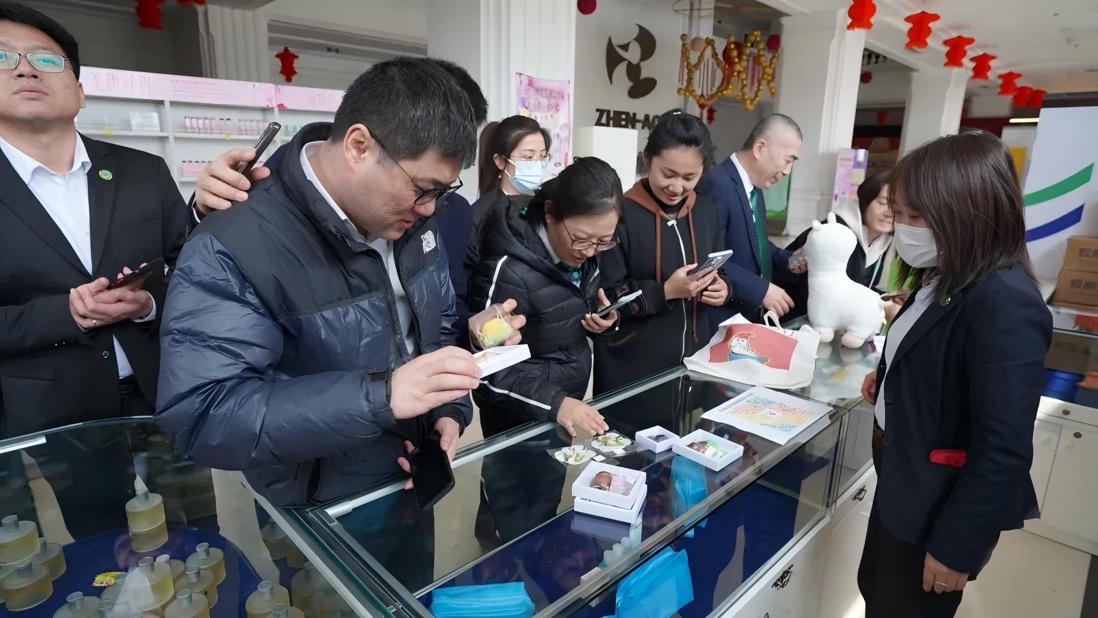 公司党员在爱心义卖站购买由爱纳中心的心青年制作的手工艺品