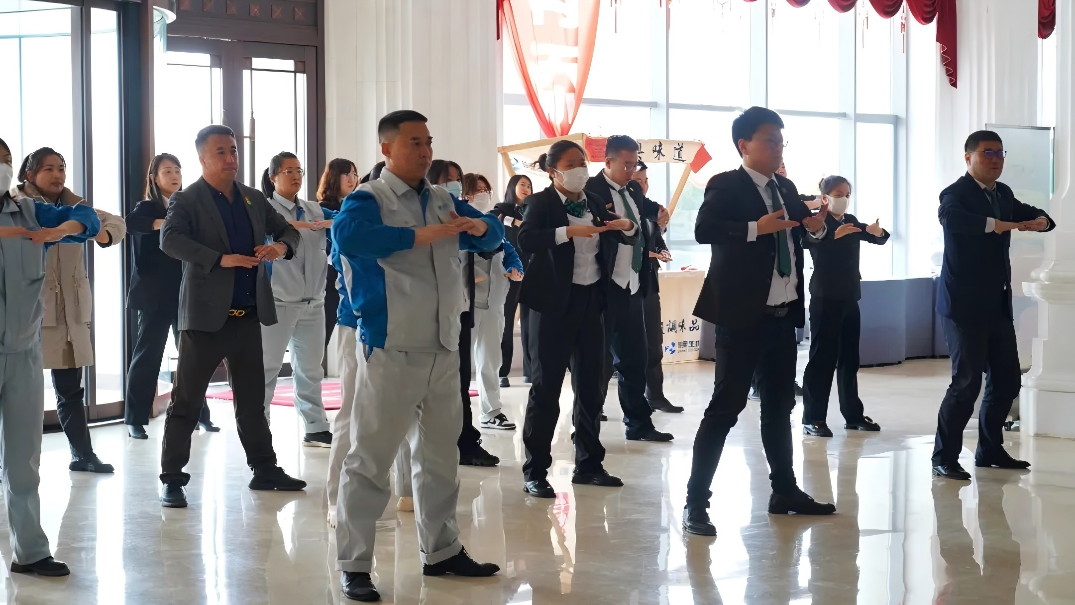学练八段锦,健康我先行。为契合本次公益活动节能健康环保的概念,增加了学练“八段锦”这项内容,在员工自发的组织下,老师的指导示范下,大家从调整呼吸开始到屈、伸、松、紧完成一系列身体动作,一招一式,展现出了极大的热情与兴趣。